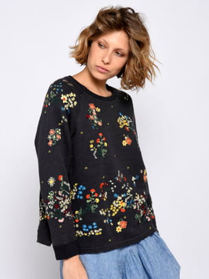 Pull sweat noir brodé de fleurs multicolores de Leon and Harper