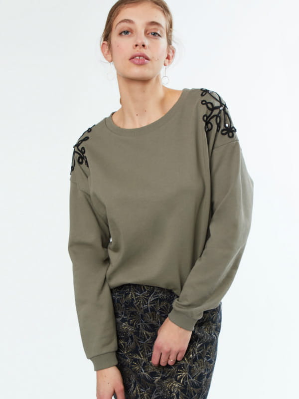 Sweat ample kaki avec appliques sur les épaules de Etam