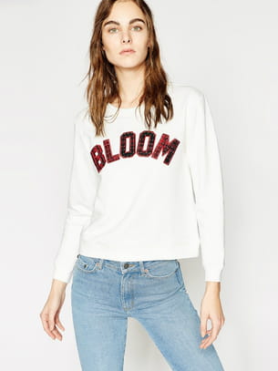 Sweat en coton blanc col rond à inscription à carreaux rebrodés de clous de The Kooples