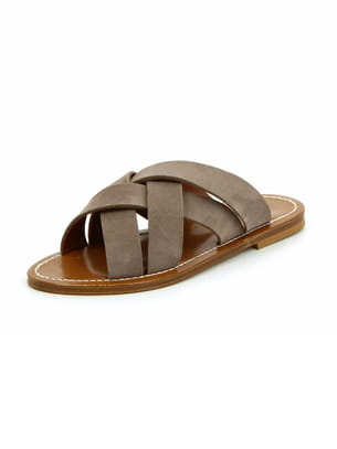 Mules plates en cuir velours couleur Paladio taupe de KJacques