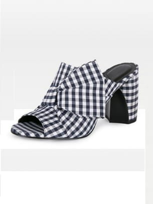 Mules à carreaux vichy noirs et blancs et à talon large de What For