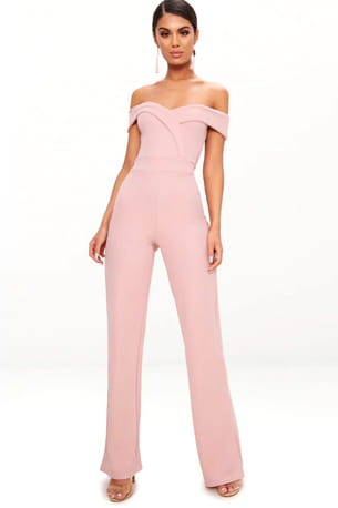 Combi-pantalon à encolure bardot rose de Prettylittlethings