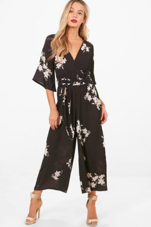 Combi-pantalon jupe-culotte noir à fleurs de Boohoo