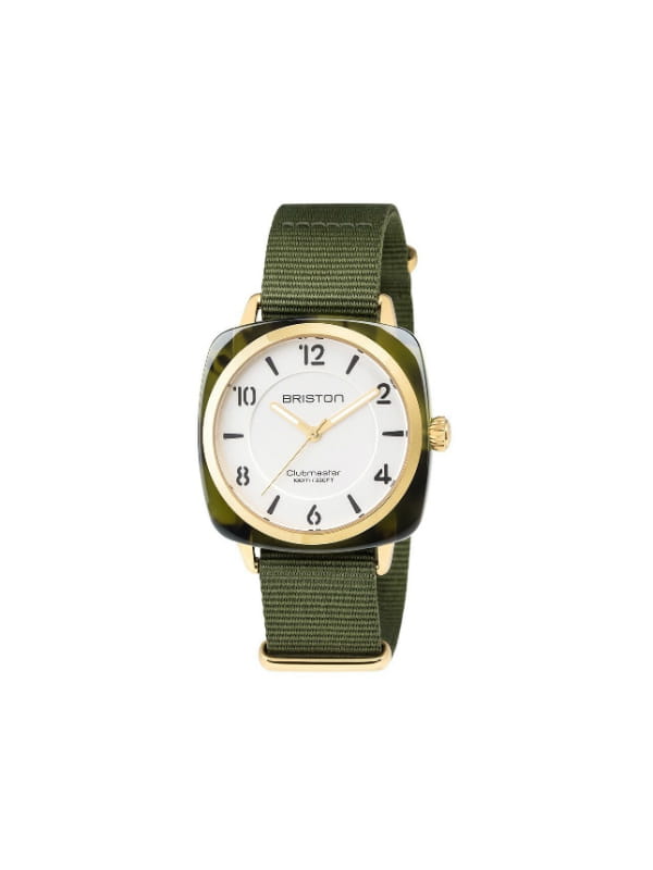 Montre kaki à cadran blanc en acétate effet écaille de tortue verte de Briston