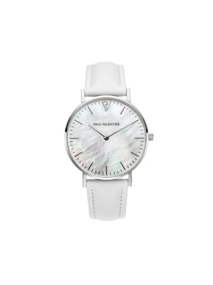 Montre à cadran en nacre naturel et bracelet en cuir blanc de Paul Valentine
