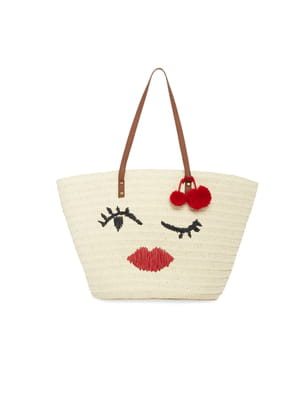 Panier en osier décoré de deux yeux et d'une bouche rouge de Primark