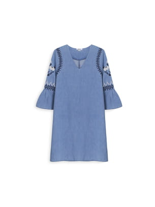 Robe bleu effet jean avec broderies sur les manches de Primark