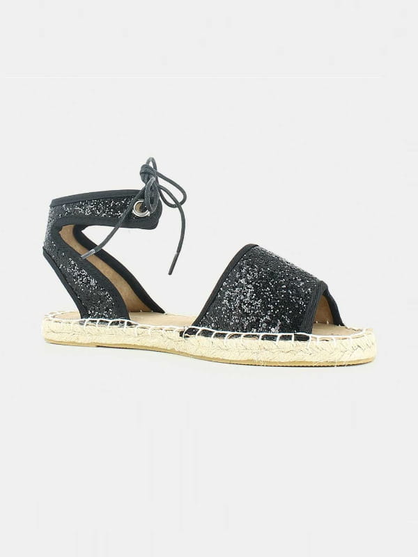 Espadrilles noires et ouvertes, nouées à la cheville à paillettes de Jonak