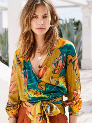 Blouse cache-cœur à manches longues imprimée multicolore de Sézane