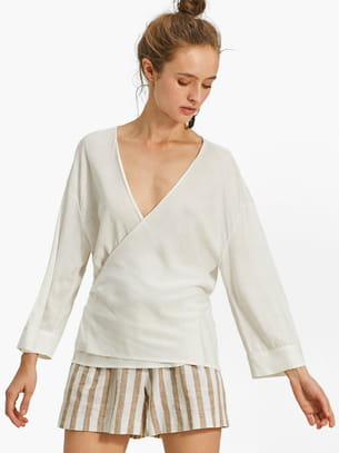 Blouse cache-cœur ample écrue blanche de Stradivarius