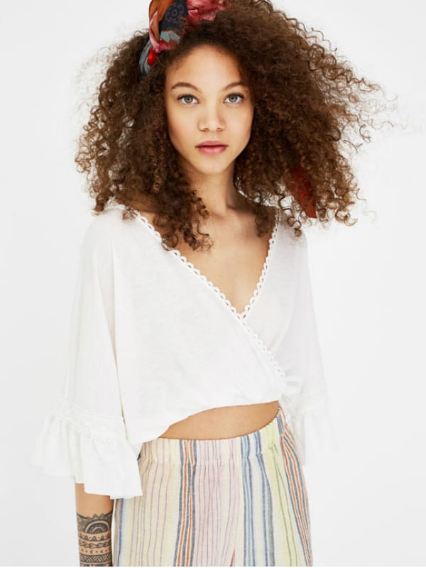 Blouse cache-cœur à manches évasées de Pull and Bear
