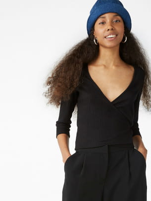 Blouse cache-cœur à manches 3/4 noire de Monki