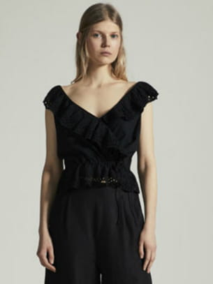 Blouse cache-cœur en dentelle anglaise noir de Oysho