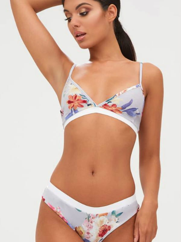 Parure de lingerie gris à imprimé floral composée d'un soutien-gorge triangle et d'une culotte de PrettyLittleThing