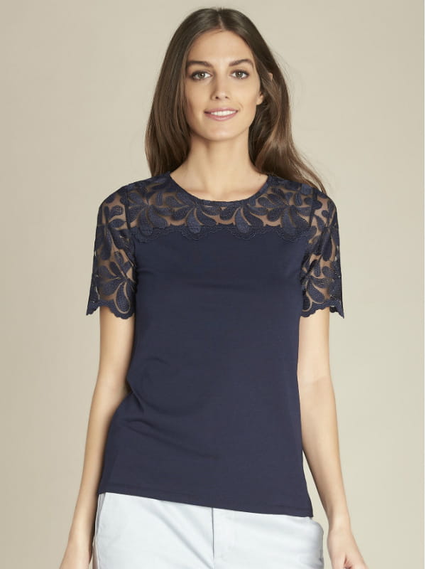 T-shirt marine avec empiècement en dentelle de 1.2.3