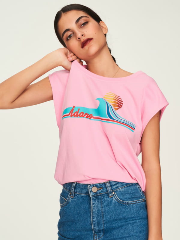 T-shirt rose avec impression colorée de Idano
