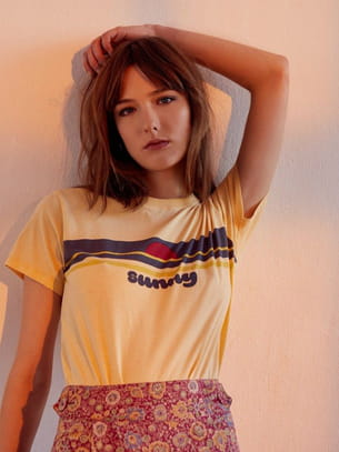 T-shirt en coton fluide couleur abricot à imprimé de Swildens