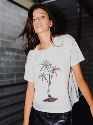 T-shirt blanc en coton à palmiers brodés de perles de The Kooples