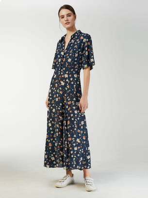 Maxi robe bleu marine boutonnée en haut à imprimé fleuri orange de Arket
