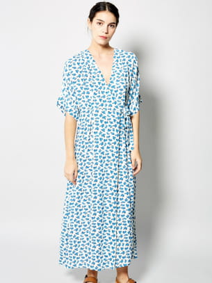 Maxi robe bleue et blanche à imprimé floral de Karl Marc John