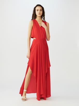 Maxi robe rouge asymétrique ajourée sur les cotés de Maje