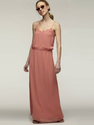 Maxi robe rose à fines bretelles avec détails en dentelle de Naf Naf