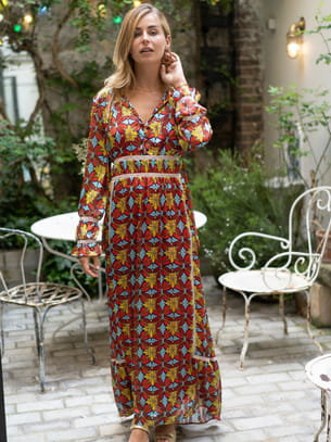 Maxi robe à manches longues à imprimé fantaisie multicolore d'Opullence