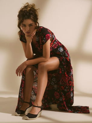 Maxi robe cache-cœur en voile de coton à imprimé floral de Idano