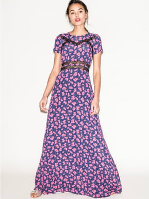 Maxi robe fleurie bleu et rose à manches courtes avec détails en dentelle de Sinéquanone