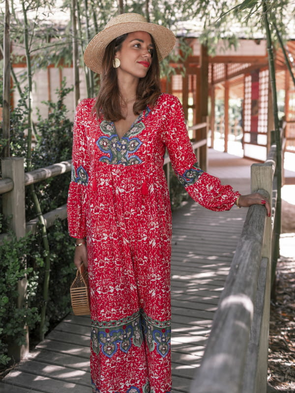Maxi robe rouge à imprimé estival fantaisie de Stella and Suzie