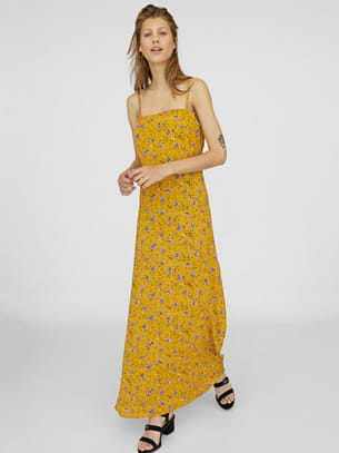 Maxi robe jaune à fleurs et fines bretelles de Stradivarius