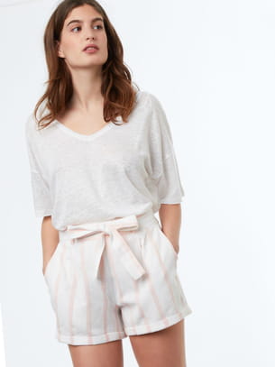 Short en coton avec ceinture rayé rose et blanc de Etam