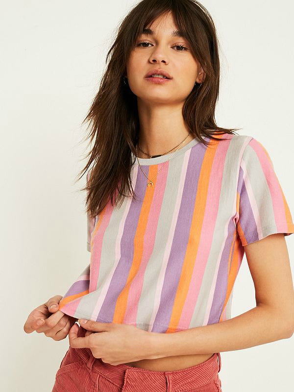 Top à manches courtes et rayures multicolore de Urban Outfitters
