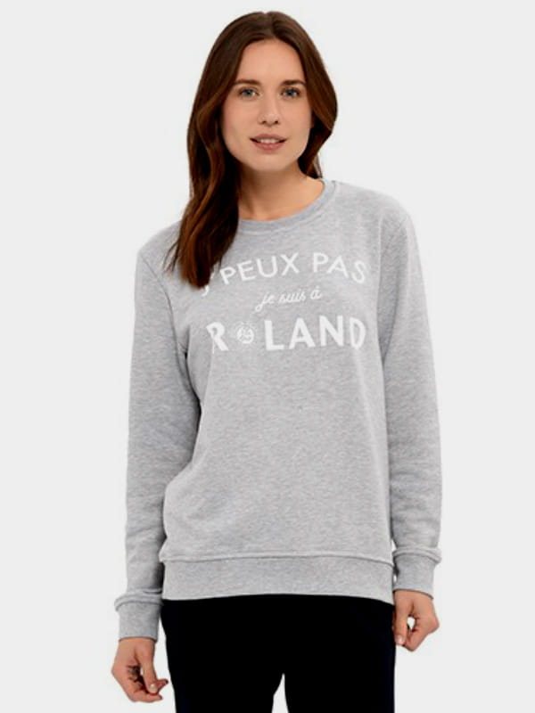 Sweat-shirt en molleton gris clair chiné à message de Roland Garros