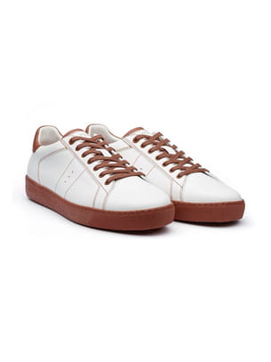 Baskets en cuir blanc avec semelles et lacets couleur brique de J.M. Weston X Roland Garros