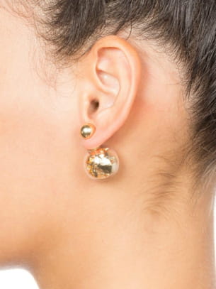 Boucles d'oreilles balancier dorées avec boule inférieure en verre de Murano emprisonnant de délicates feuilles d'or de Maison Lurex