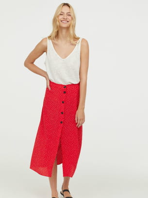 Jupe midi rouge à pois blancs boutonnée sur le devant de H&M