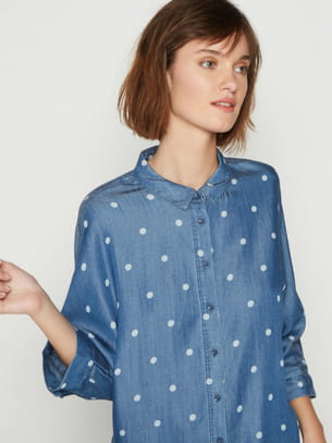 Chemise bleue effet jean à pois blancs avec manches 3/4 de Monoprix