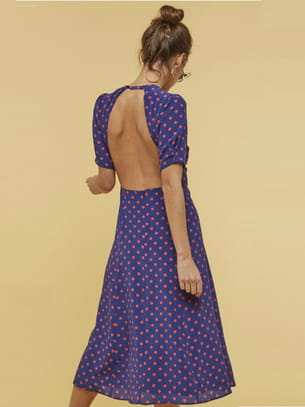 Robe mi-longue dos nu en soie imprimée de pois de Musier
