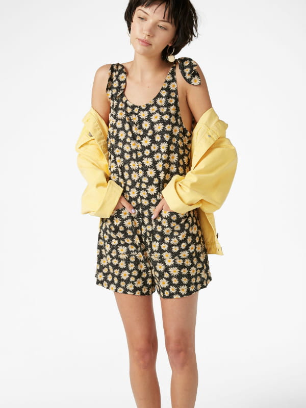 Combinaison short à imprimé marguerites noué aux épaules de Monki