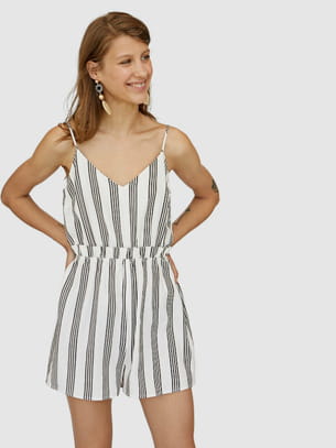 Combinaison short rayé gris et blanc à fines bretelles de Stradivarius