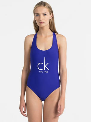 Maillot de bain une-pièce indigo avec logo "CK NYC" blanc de Calvin Klein