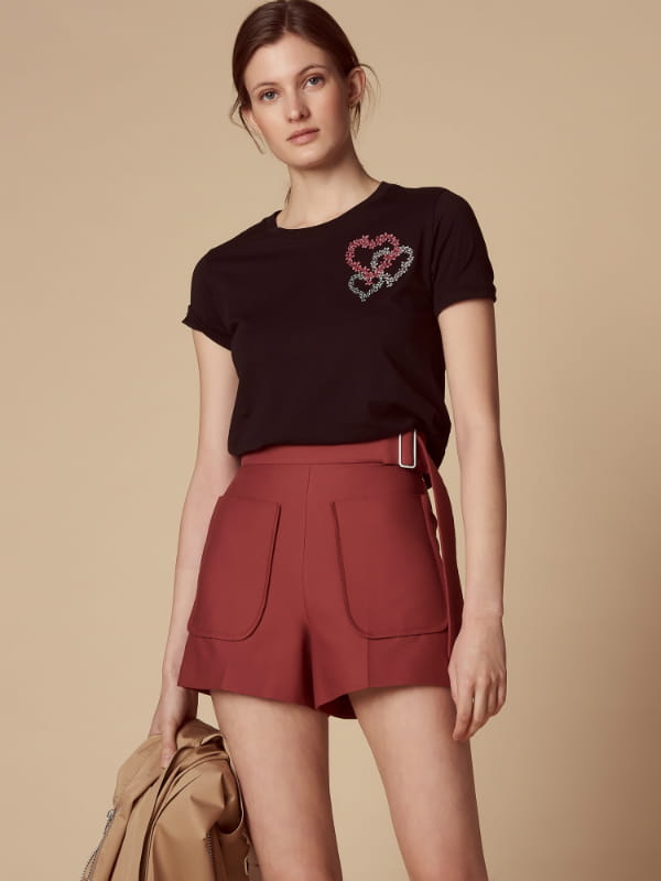 Short ocre ceinturé avec deux grandes poches sur le devant de Sandro