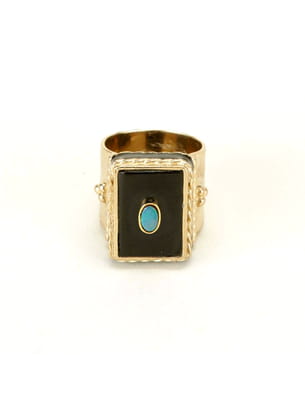 Bague en bronze plaqué or avec turquoise de Room Service sur Monshowroom