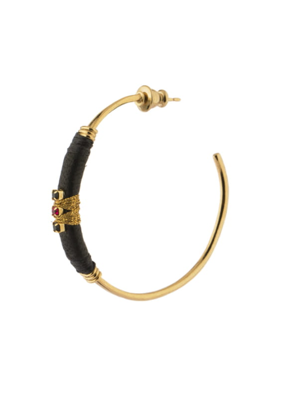 Créoles en métal doré, cuir et cristaux Swarovski de Satellite