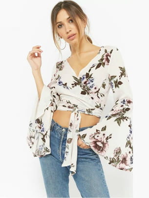 Crop top blanc à imprimé floral à manches larges de Forever 21