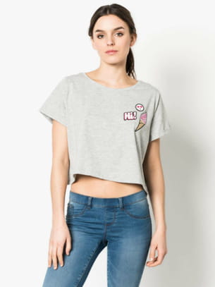 Crop top classique paré de broderies fantaisie sur la poitrine de Gémo