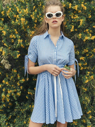 Robe chemise en coton à imprimé vichy bleu et blanc de Grace and Mila
