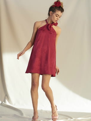 Robe courte couleur framboise nouée autour du cou de Mirae