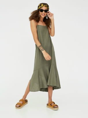 Robe midi kaki à volants et fines bretelles de Pull and Bear
